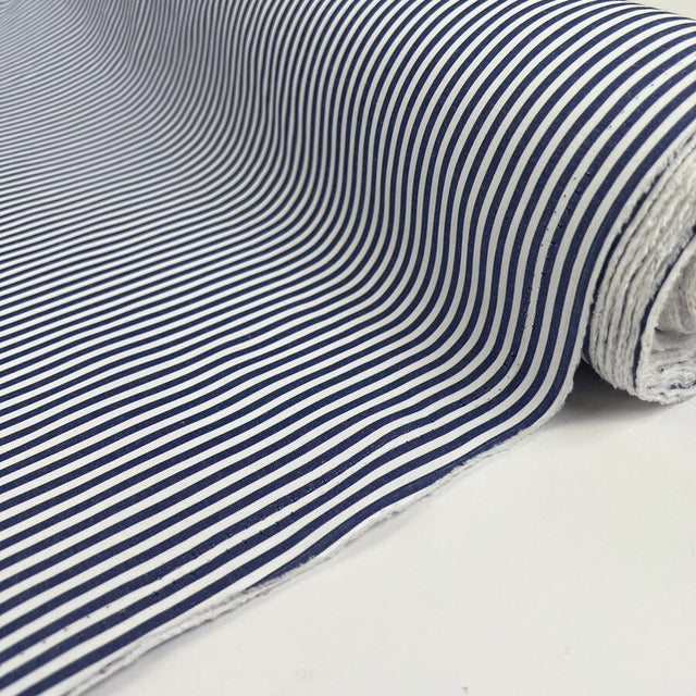 A crisp and lightweight striped fabric, woven from 70% cotton and 30% nylon. At 147cm wide and 84gsm, this cloth features a fresh navy and white stripe design, giving it a clean, timeless look. Breathable and smooth with a soft handle, it’s a versatile fabric perfect for classic summer makes.