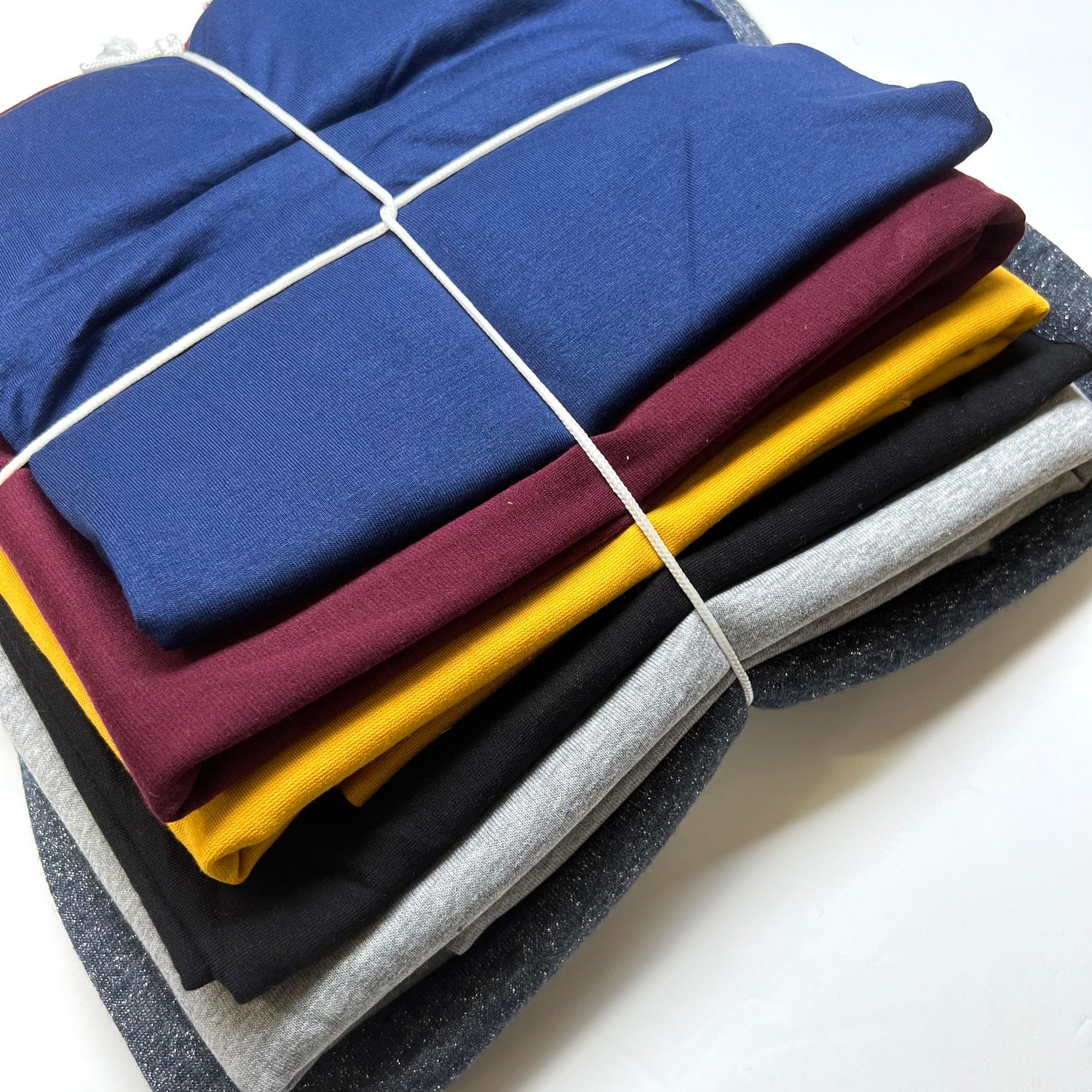 3.45m mixed bundle pack, 6 pieces of jersey fabric, ranging from 46cm - 70cm fabric pieces. Great value!