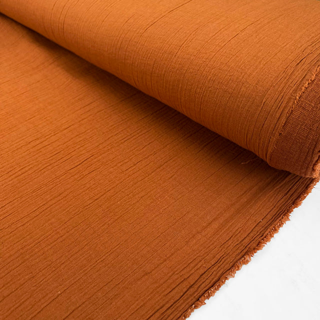 This 135cm wide, rust cotton & linen double gauze fabric offers the perfect balance of softness and durability, making it ideal for creating effortlessly stylish and breathable dresses. Whether you're strolling along the beach or attending a summer soirée, this fabric will keep you feeling cool, comfortable, and effortlessly chic all day long.