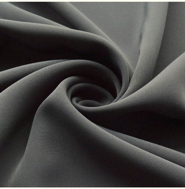 150cm wide Landon superior smooth crepe in a deep grey hue, perfect for special occasion dresses and prom attire.