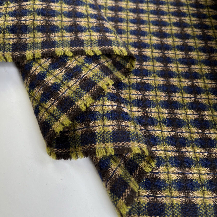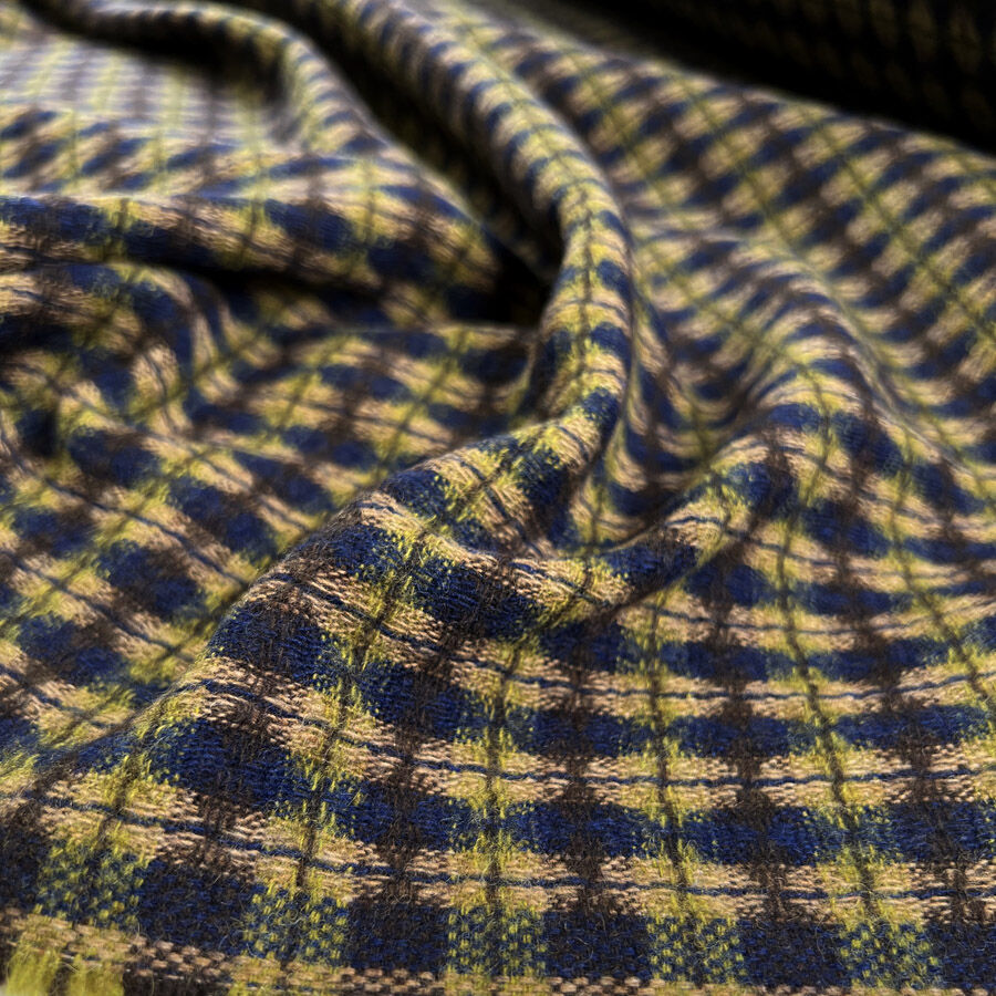 Textured, soft, and full of depth, this wool blend check fabric combines rich tones of navy, green, and brown in a beautifully woven design. Made predominantly from wool with added polyamide and polyester for strength and durability, it offers a lightly brushed surface and soft hand.
