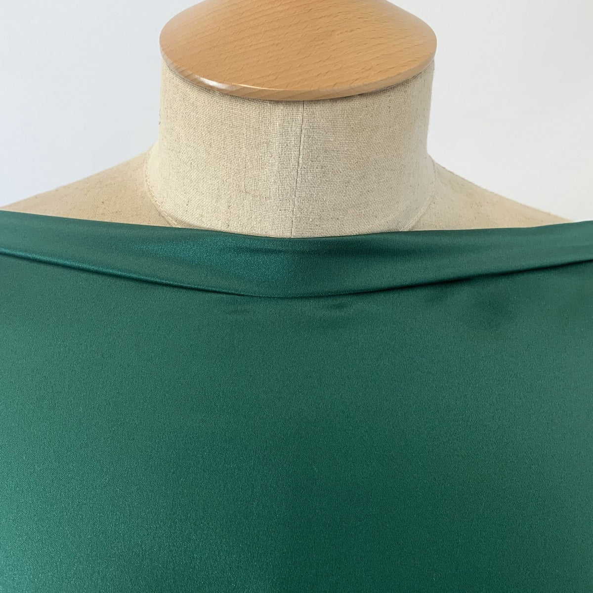 Beautiful matte mid-weight duchess satin in a delicious bottle green. The perfect fabric for occasion dresses and bridal dresses. This fabric is easy to work with, presses beautifully and is nice and soft. You would use this fabric for more structured style dresses, large skirts, fancy sleeves and bows. 100% polyester and non stretch. Manufactured in Japan.