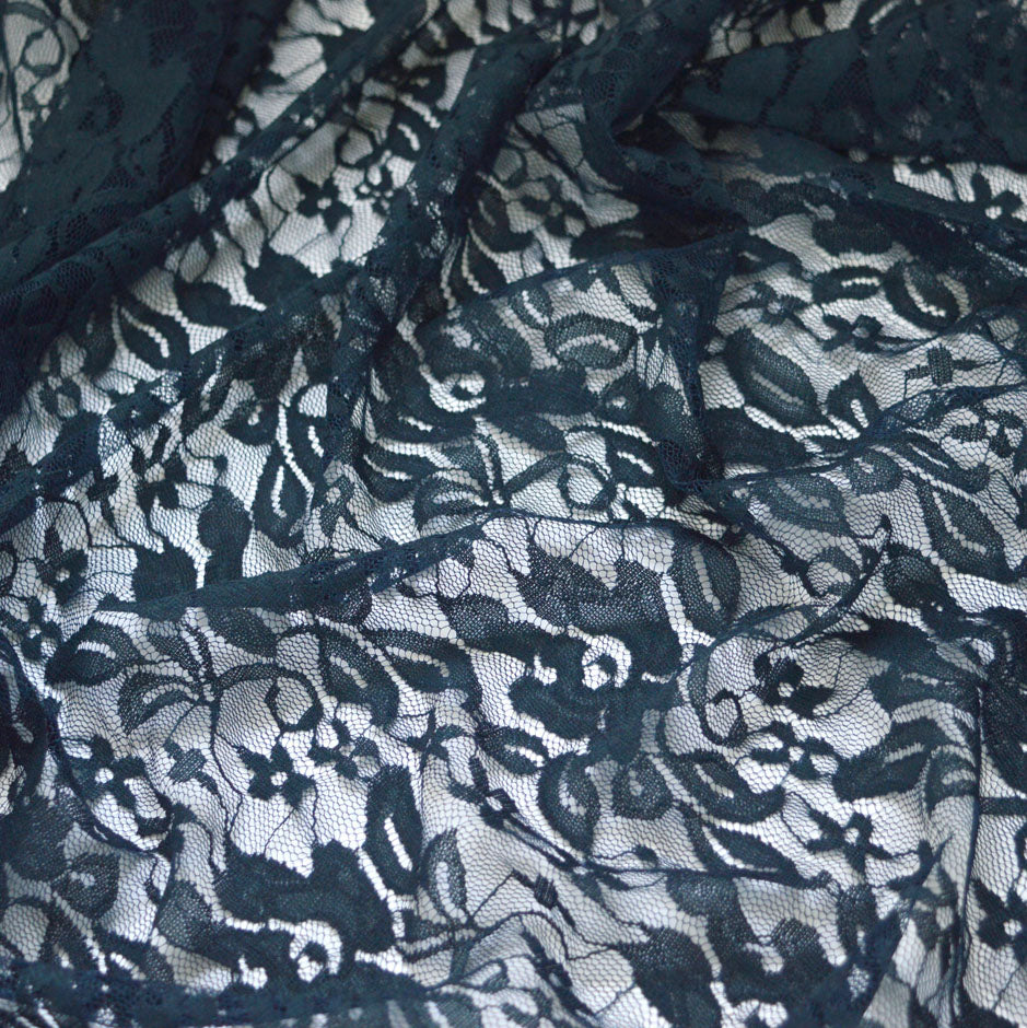 | Soft and lacy very gentle in appearance and texture. Made in polyester, this comes in a navy floral lace 150cm wide. |