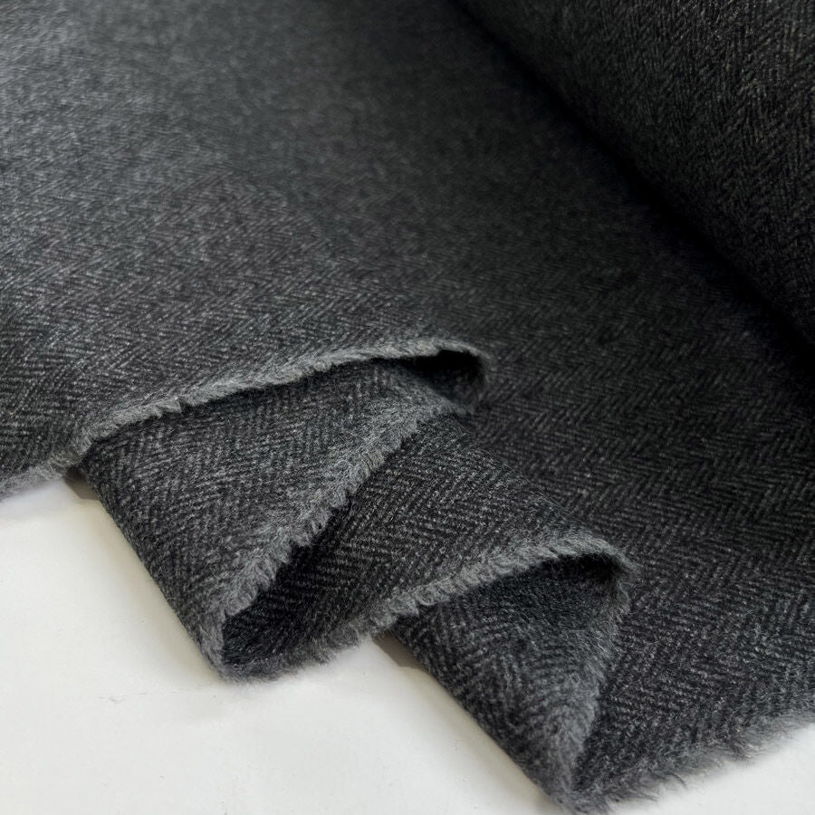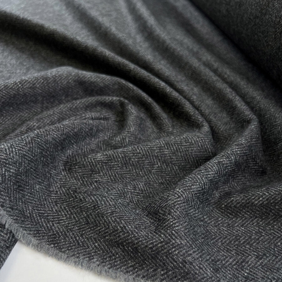 Refined and timeless, this charcoal herringbone suiting fabric combines classic design with a soft, durable handle. Woven from 75% wool and 35% polyester, it offers the perfect balance of warmth, breathability, and resilience.