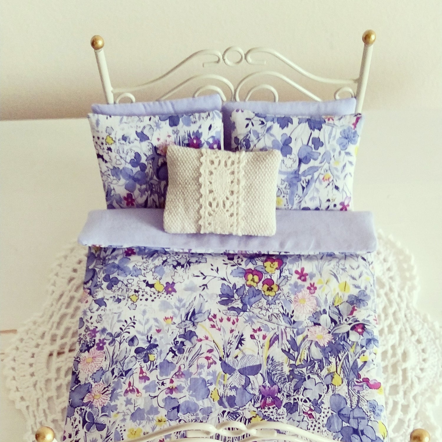 This stunning Pima cotton lawn fabric from our 'Garden of Shakespeare' range features a delicate floral design in serene shades of blue, contrasted beautifully with deep purple accents.