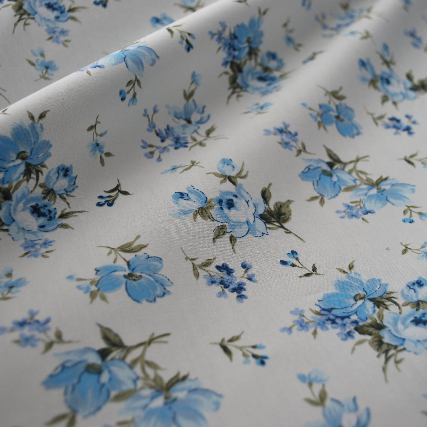 Exquisite 100% cotton Poplin fabric with a delicate traditional style blue floral design perfect for making bridesmaid dresses for all ages! Approx 121gsm