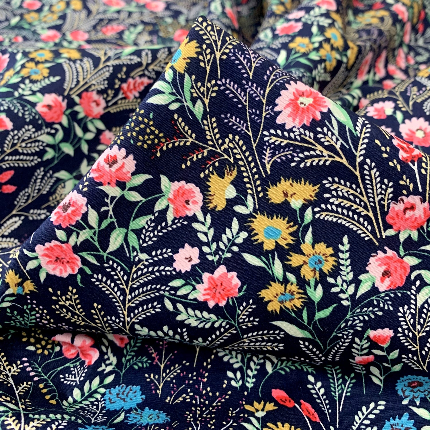 | Here we have a collection of new cotton poplin fabric. This one is 110cm wide cotton poplin print fabric in navy with an all over floral beautiful print. Poplin is great for shirts, dresses and craft. | |