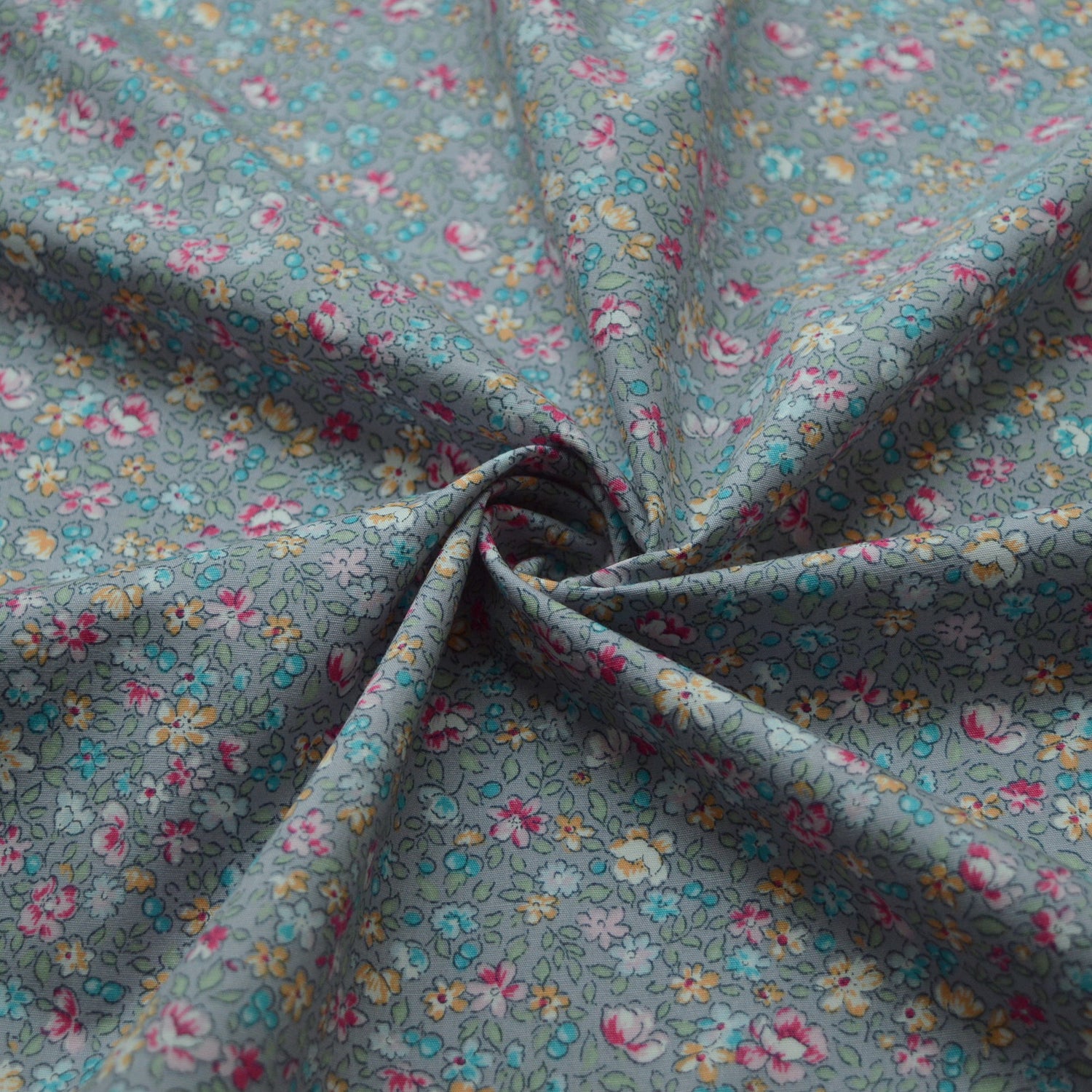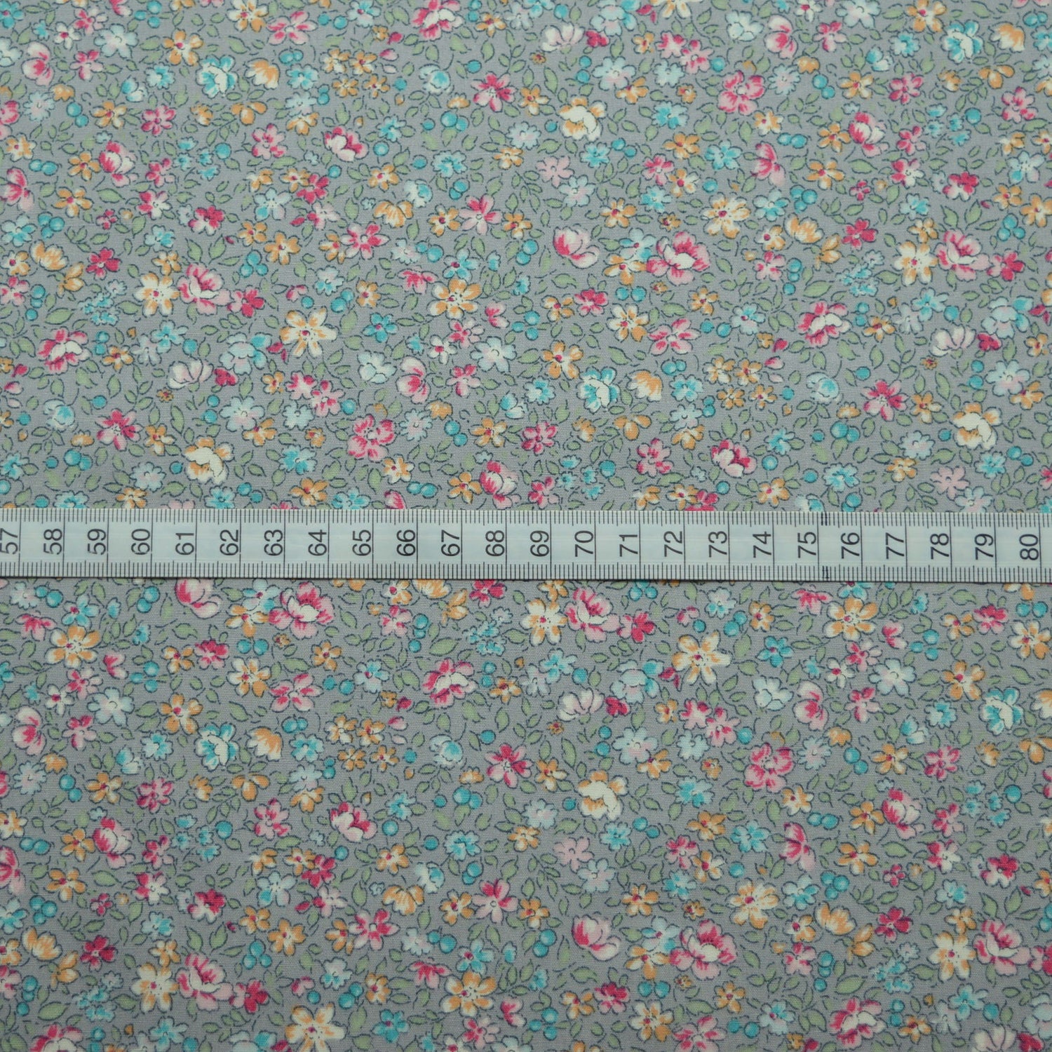 | 113cm wide grey cotton poplin fabric with small flowers print all over. Simply cute. | |