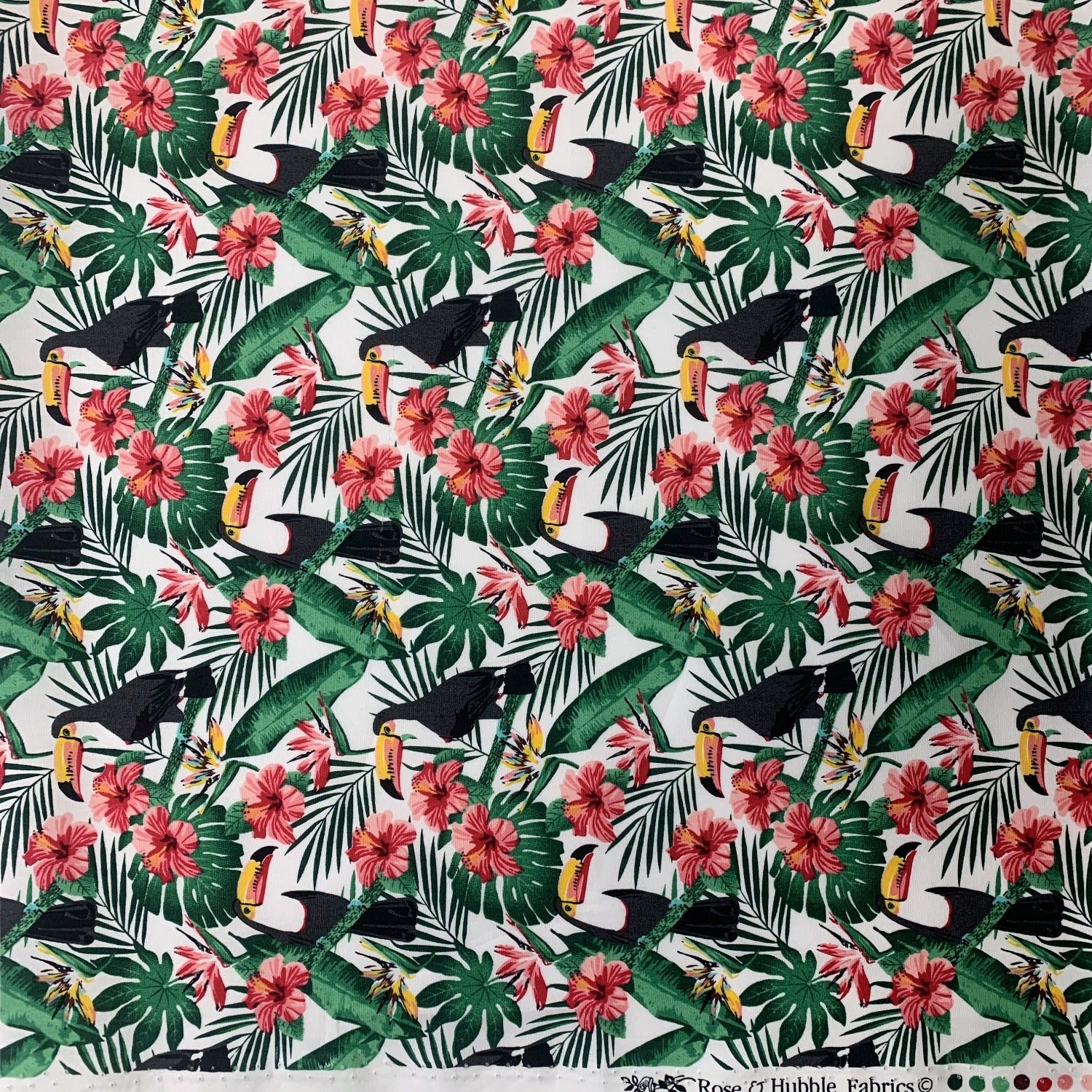 Poplin print - Tropical Toucans - White is backordered and will ship as soon as it is back in stock.