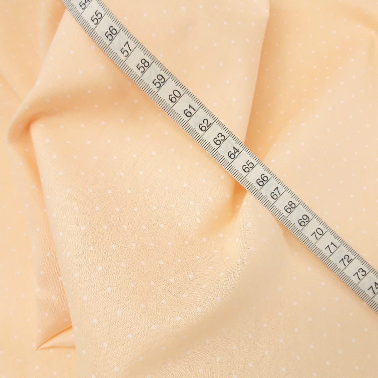 This 112cm wide, superior quality poly/cotton fabric features lots of tiny "ditto" dots in ivory on a peach ground. Great for blouses, dresses, nightwear and crafts. A lovely fabric for little girls dresses.