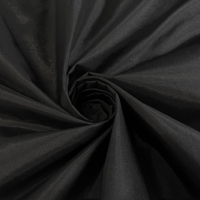 Made from a mix of duck-down, PA, silk, polyester and PU, this black quilted fabric is great for coats and bags!