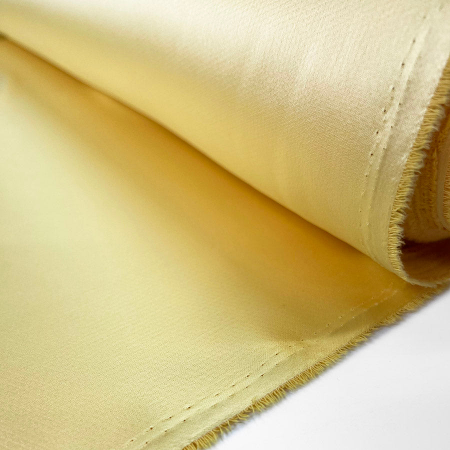 150cm wide, satin fabric in yellow with a smooth, fluid drape.