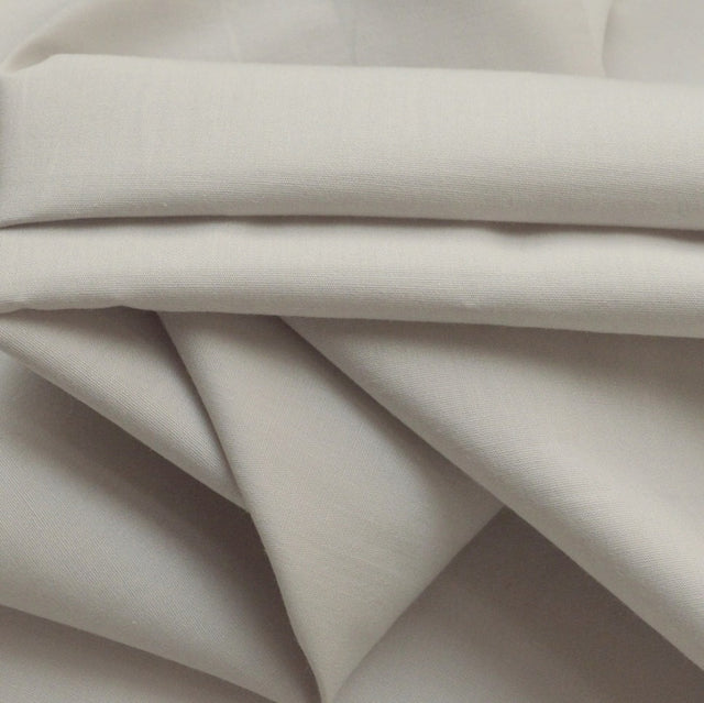Discover our 114cm wide, 121gsm plain dyed cotton poplin fabric in pale grey, made from 100% cotton. Perfect for creating long-lasting garments and stunning crafts.