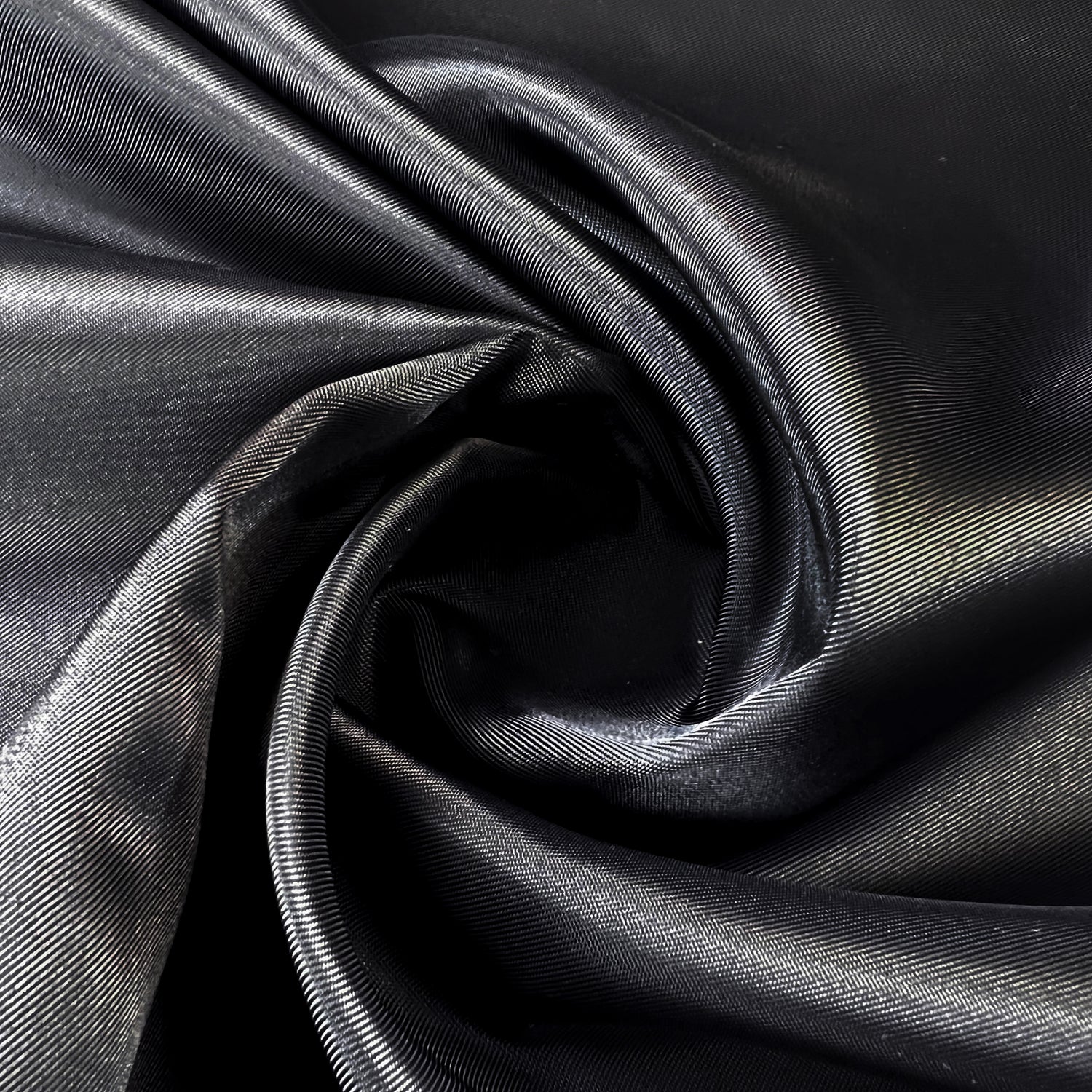 This 150cm wide 100% recycled polyester lining fabric has a soft twill weave pattern in black with an elegant satin finish.