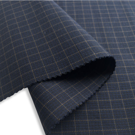 This suiting fabric features a subtle fine line overcheck in mustard, adding a touch of sophistication to its classic appeal. With a perfect balance of durability and flexibility, this fabric is ideal for crafting tailored suits & dresses.