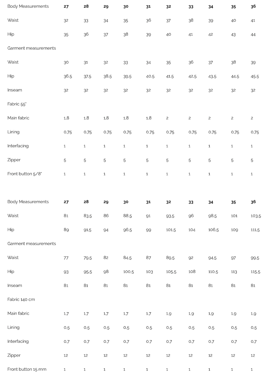 Men's Chino pants sewing pattern with back welt pockets, front fly with zipper, side pockets, and waistband with five belt loops. The pattern is drafted with 32” / 82 cm inseam. Men's size 27"-36"