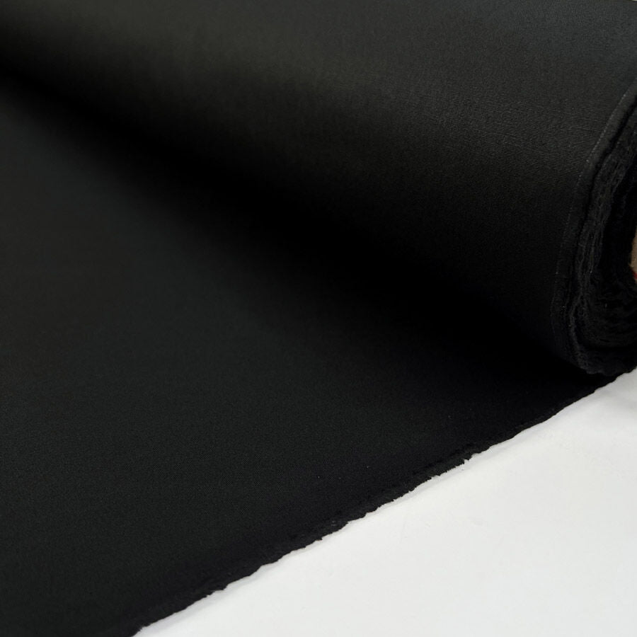 This 155cm wide, black cotton fabric offers a natural feel, excellent drape, and a water-resistant finish, making it a versatile choice for outerwear and accessories.