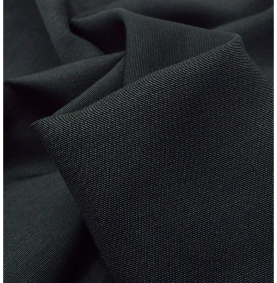 150cm wide soft black viscose mix skirt cloth, or perhaps even shirt cloth. Yep, could do that as well; it has enough weight to allow it to drape and will make fabulous swirly skirts. This has a wave pattern in the weave it so it is not plain, it is very subtle and we cannot to pick up in a photo. It would not affect pattern matching though it is so subtle. |