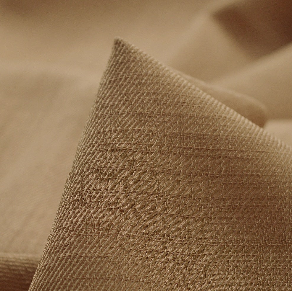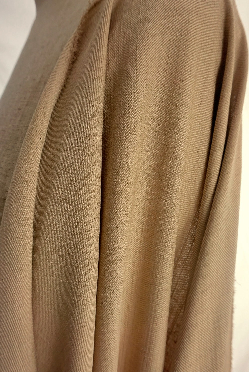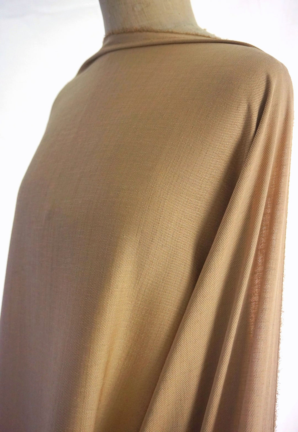 | 150cm wide polyester suiting in light brown, there’s lot of woven interest, some yarns being highlighted by various thicknesses and slubbiness, plenty of weight so it hangs well. | ||