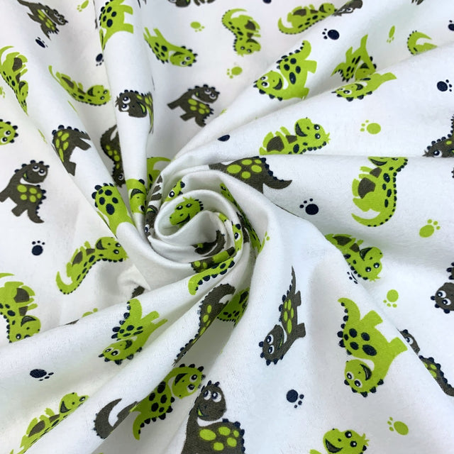 Dinosaur brushed cotton printed Winceyette flannel fabric, perfect for little boys pyjamas. 112cm wide Perfect for winter pyjamas, hot water bottle covers. |