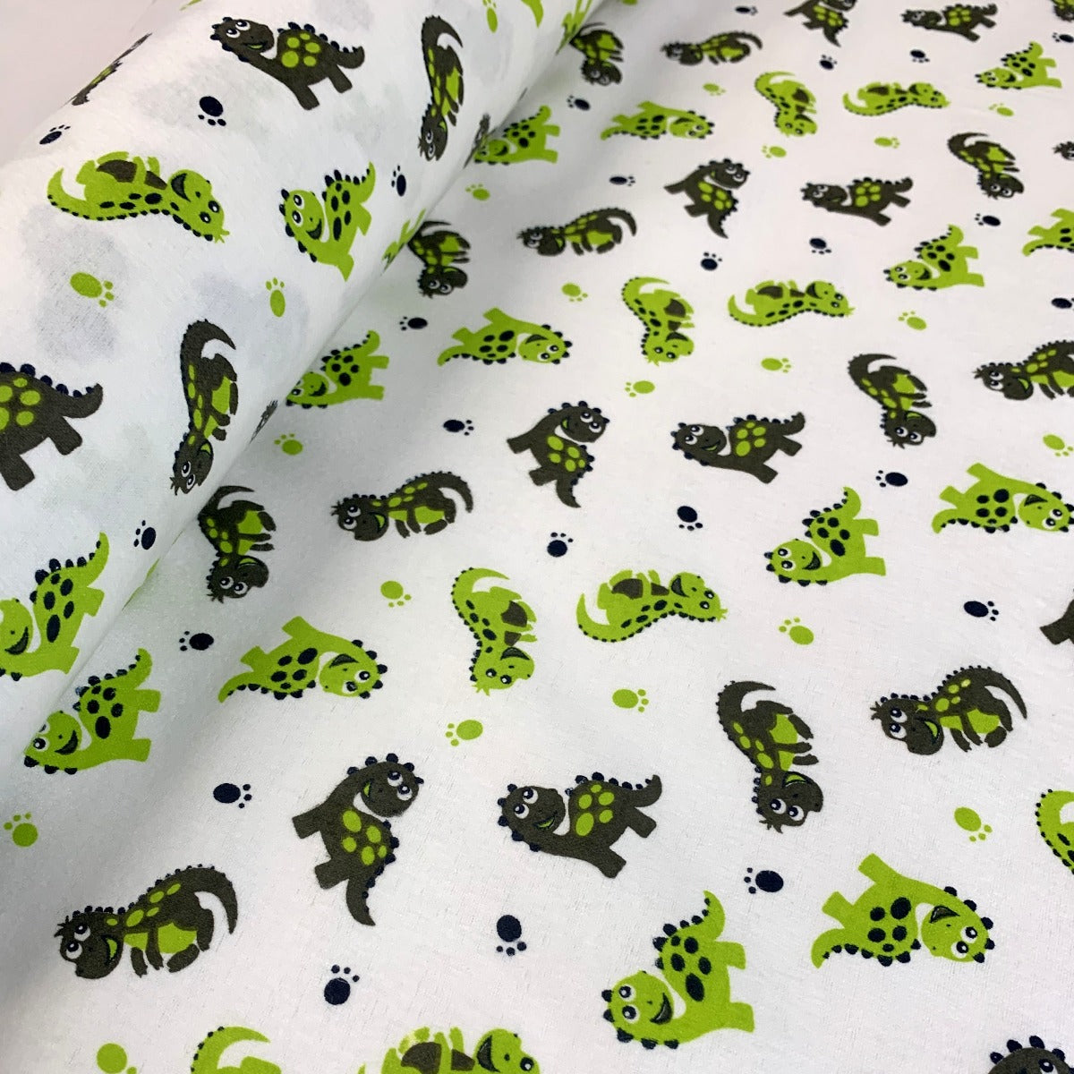 Dinosaur brushed cotton printed Winceyette flannel fabric, perfect for little boys pyjamas.