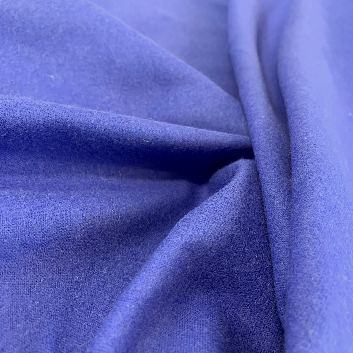 Also known as flannel or flannelette, this royal blue soft, brushed 100% cotton fabric has a warm handle, making it perfect for nightwear and other garments. Developed in 17th century Wales, flannel features a distinctive napped surface that creates its characteristic softness and warmth despite its light weight. The fabric's 'fuzzy' feel is due to raised fibres that retain heat and absorb moisture.