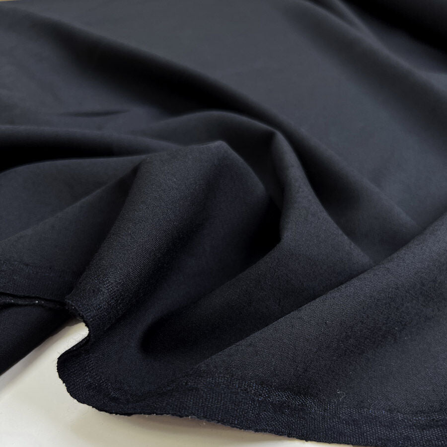 A refined 80% wool, 20% polyester suiting fabric in a deep navy blue. Light in weight with a soft, smooth handle, it has a lovely drape and shapes well for clean, sharp tailoring. The finish gives a polished look that’s perfect for classic suits, jackets, and skirts — a great all-rounder for timeless, elegant sewing projects.